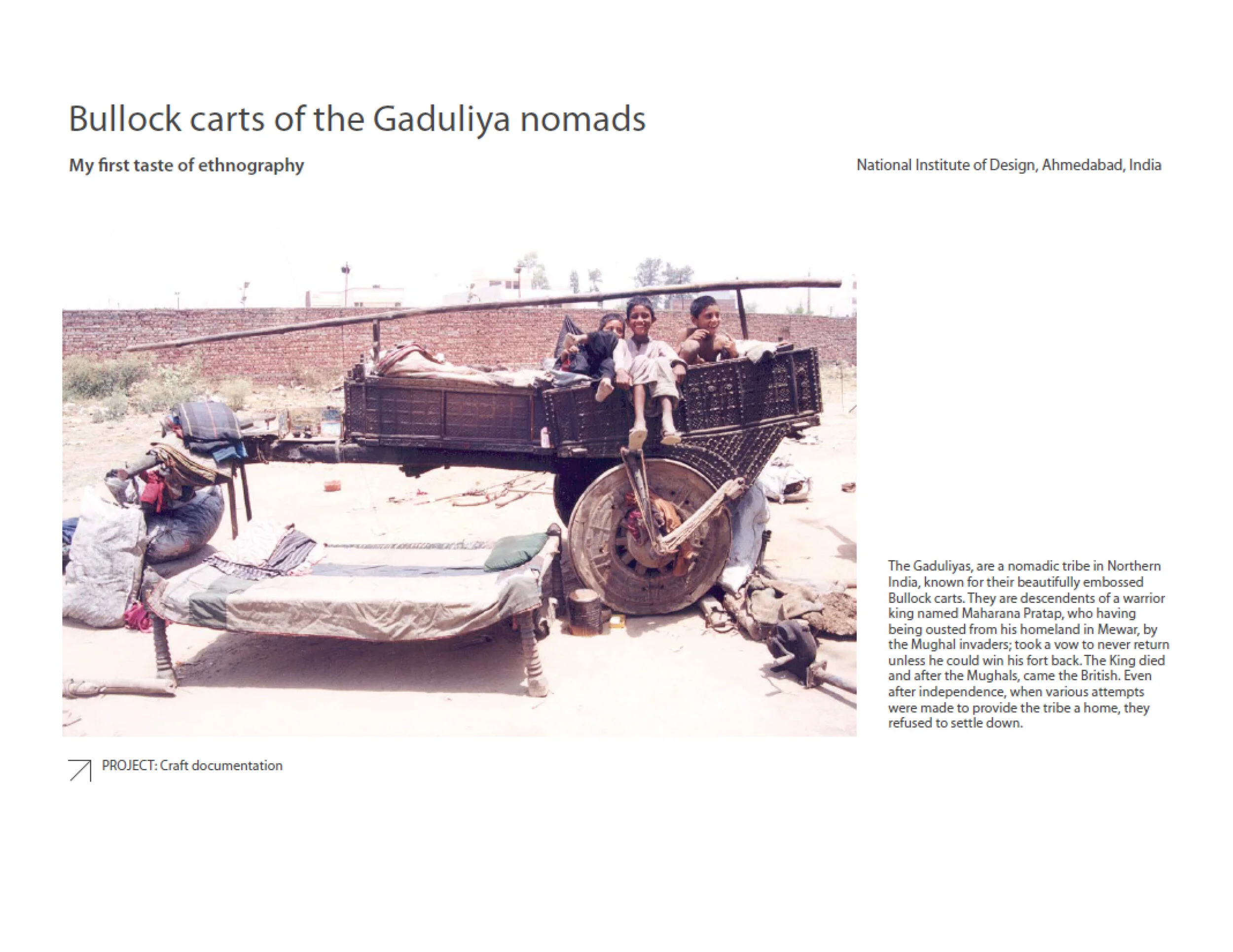 I was first introduced to ethnographic research as an undergraduate student at the National Institute of Design, India. Featured below is a project I did as part of a documentation process of the various crafts in India by NID. I explored ethnographic research methods and tools used in User Research in more detail at the Institute of Design, IIT , Chicago. Some of these projects I have described below .