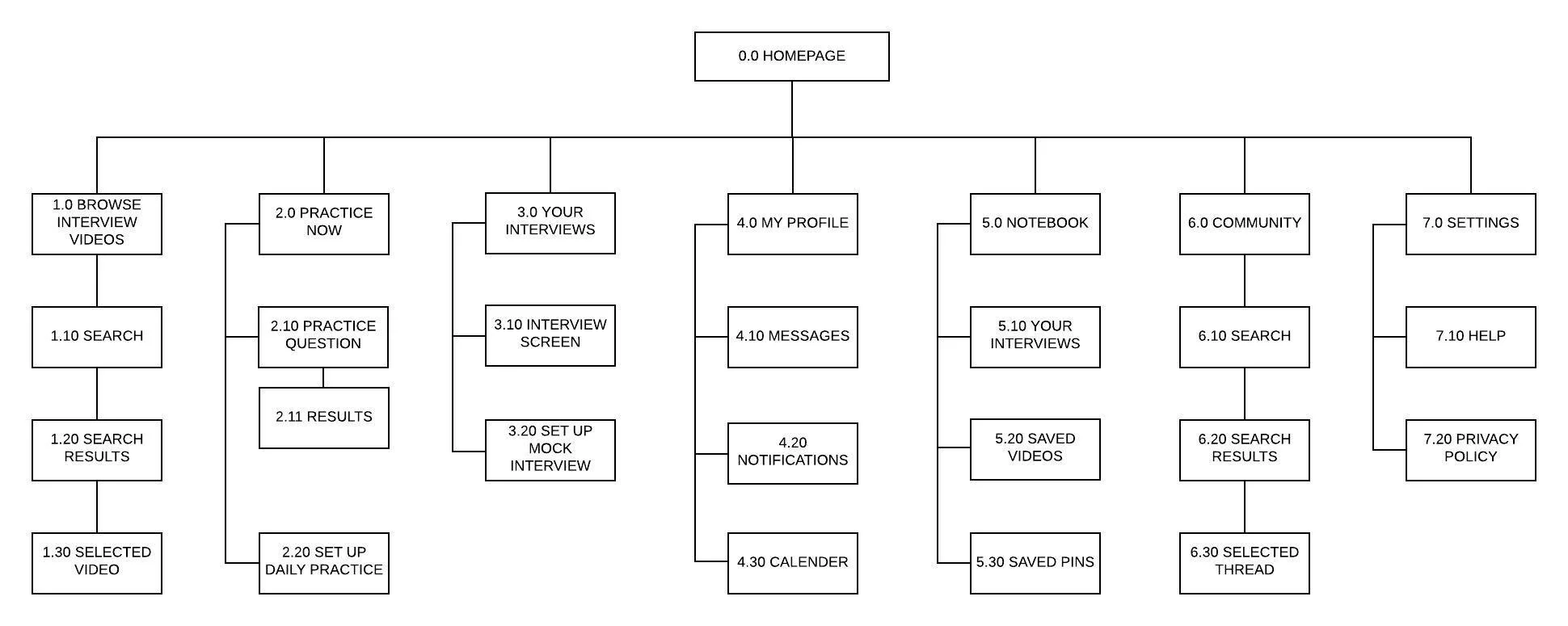 Based on the user journeys and flows I created an initial site plan which was improved upon after results from a card sorting activity.