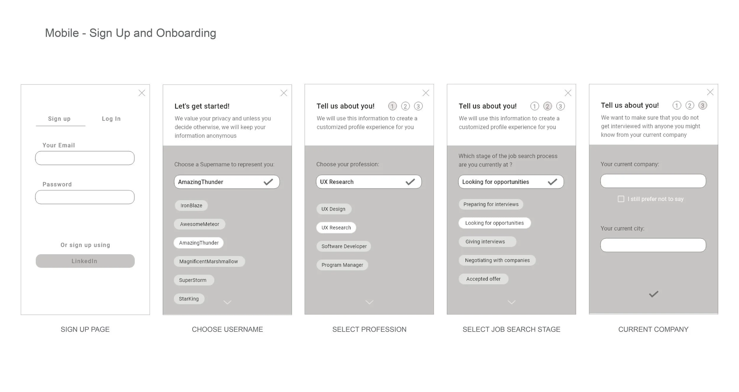 I chose two main personas to map user journeys- Marie, who is looking for a new opportunity after a pregnancy pause and Ash, who is looking for advice on how to best negotiate a job offer.